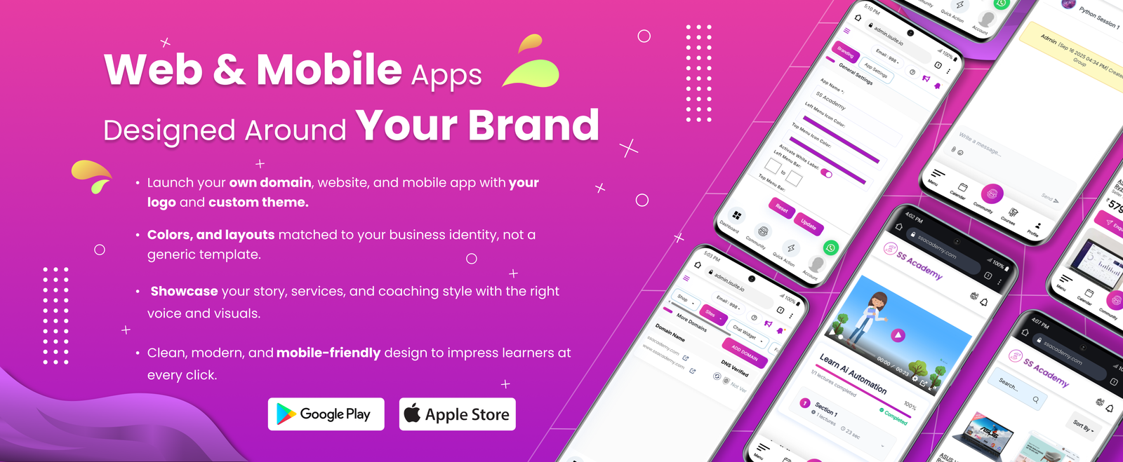 Deliver your coaching services with a dedicated web and mobile app. Students/members can access courses, attend live classes, view certificates, and engage with your community - all on the go.